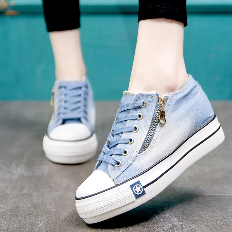 Special Price of Chunky Sneakers for women 2019 Canvas Shoes Girls Fashion Zipper Increase within 5CM Walking Design